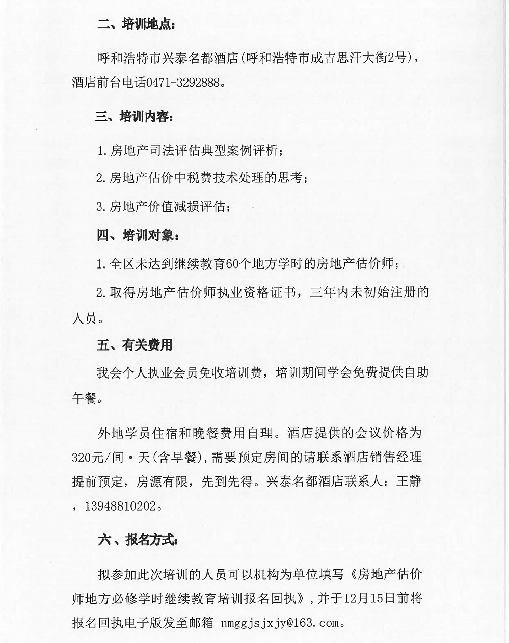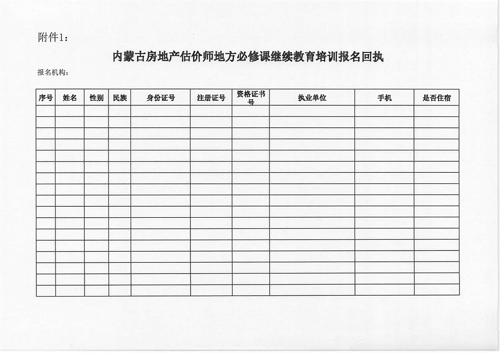 内蒙古房地产估价师地方必修课继续教育培训报名回执.xlsx